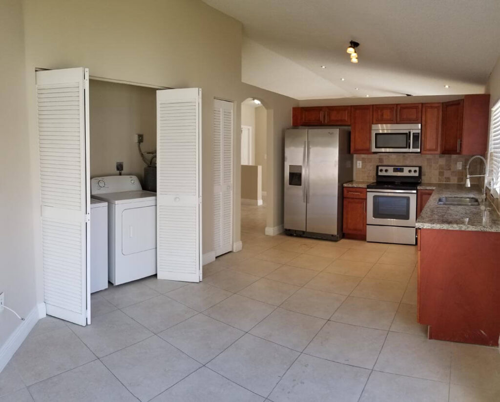 Awesome 1-story home in Sunset Bay. This well maintained one-story home features appealing architectural details, a large private backyard complete with sprinkler system and fencing, a split floor plan, vaulted ceilings, an eat-in kitchen, ceramic tile throughout, a curved/S-tile roof in a great cul-de-sac location. Updated kitchen with granite counters, stainless appliances including a ceramic top stove, large frig, dishwasher. Master-bath updated as well. Wash & dryer inside the house. Impact windows and doors throughout, ceiling fans, and other new fixtures. Great entertaining space in the back with a custom-built BBQ and trellis for shade. Walking distance to heated community pool, close to Sawgrass shopping and dining, and great schools.