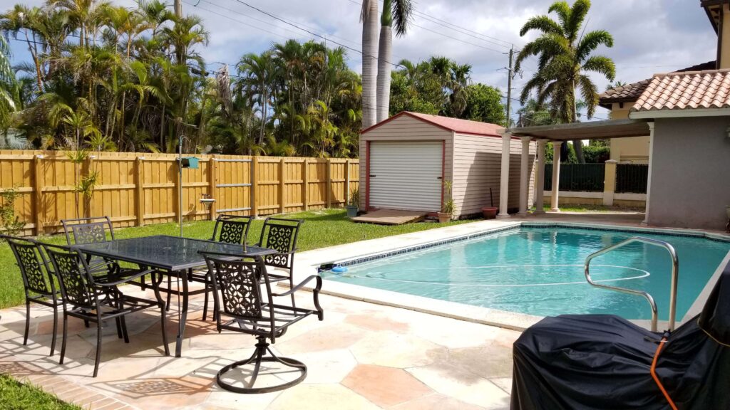 Come see and fall in love with this 4 bed, 3 bath pool home in East Hollywood! Just under 2400sf with a huge circular brick-paved driveway. Lush landscaping and cool tones make this house warm and welcoming. The back has a large, well-maintained pool and yard space to play in as well as dining and barbecue space. There’s a storage shed/workspace as well as a covered area outdoors. The rear fence is new as is the A/C. The house is very bright, well-laid out, and offers a great amount of space. The garage was converted (with permits years ago). It is the 4th room with a closet and full bath. The kitchen is gorgeous and has both an eat-in area and table space. The laundry room is separate, off of the kitchen. Quiet street, great neighborhood, and ready for you to move in!