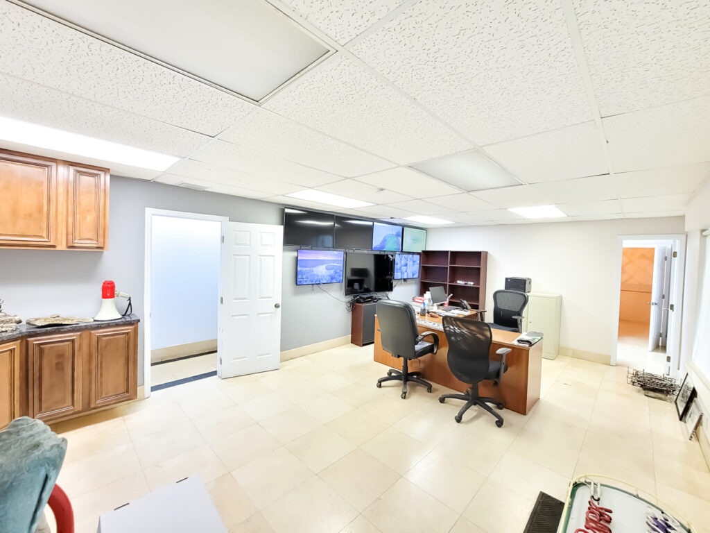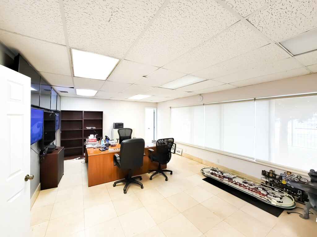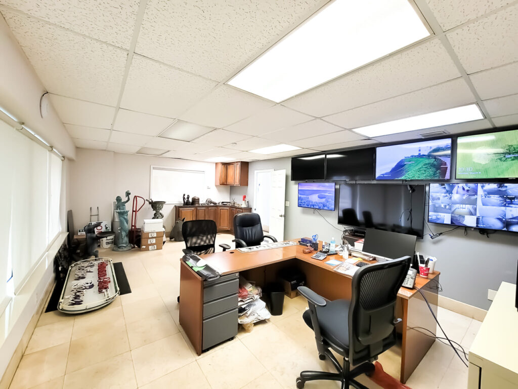 Over 16,000sf, 2 free-standing buildings (13,000SF / 3,000SF). New Roof, New hurricane impact windows and doors. Bldgs are situated on 38,000 SF/- fenced corner lot; secured, gated. Approved for outside storage. Frontage on Powerline. Grnd flr of main bldg has 7,000 SF +/- of exec offices + showroom, conf room, kitchen, washer/dryer, shower & 2 baths. 2nd flr is open-air/cubicles + kitchen/breakroom & 2 bath. Front building has 2 storage areas + 8 cross access overhead doors, 16ft+/- ceiling, 500SF warehouse managers’ office w/ 3 bathrooms. Rear building is approx. 3,000 SF w/ approx. 18 ft. ceiling height, used for storage + rough plumbing, 4 overhead doors, can easily be subdivided and set up as four (4) separate bays. Parking for at least 27 vehicles, 3-phase power to each building.