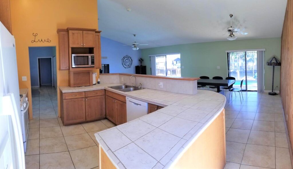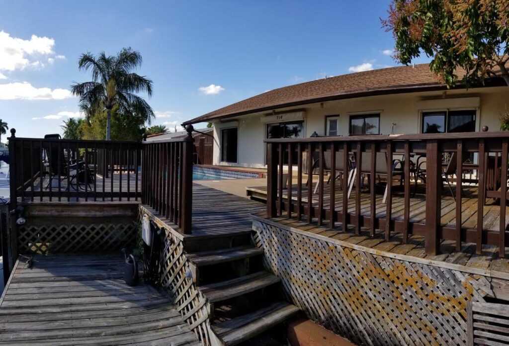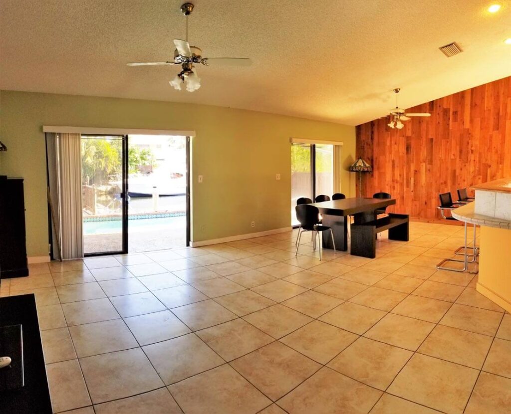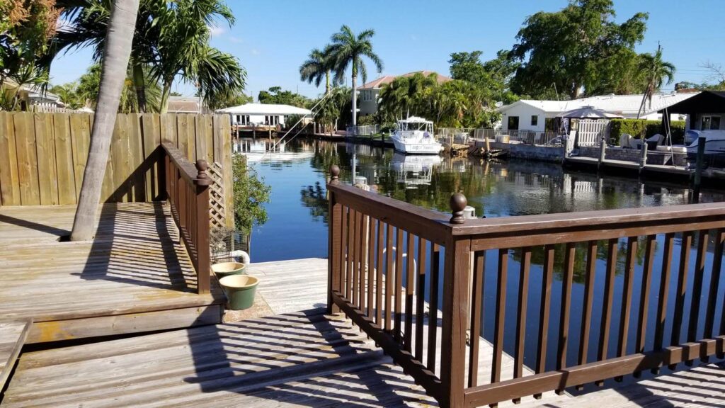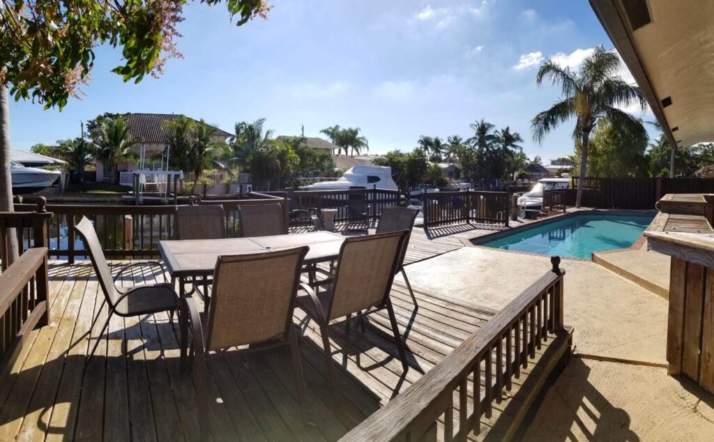 Amazing 4/3, Water-front Pool Home, 80ft Dock, deep water canal. Master suite + guest suite. 15×30 pool, diamond-brited, surrounded by a stamped-concrete patio, multi-tier wood deck w/ eating/sitting areas + boat dock. Outside shower + a bar, great for entertaining. Open floor plan w/ huge sitting areas, huge bedrooms, even an eat-in bar. Tons of storage & large pantry. Like gas? You’ll love this kitchen. Propane tank outside. Jacuzzi tub in the master bath, master bed looks out onto the poo. Huge closets & full laundry area off the kitchen. 20×20 tiles in the living areas & laminated wood in bedrooms. The property is elevated & has hurricane shutters. Family-friendly neighborhood w/ access to shops, restaurants and more. Walk, bike, boat or spend the day on the ocean/intracoastal.